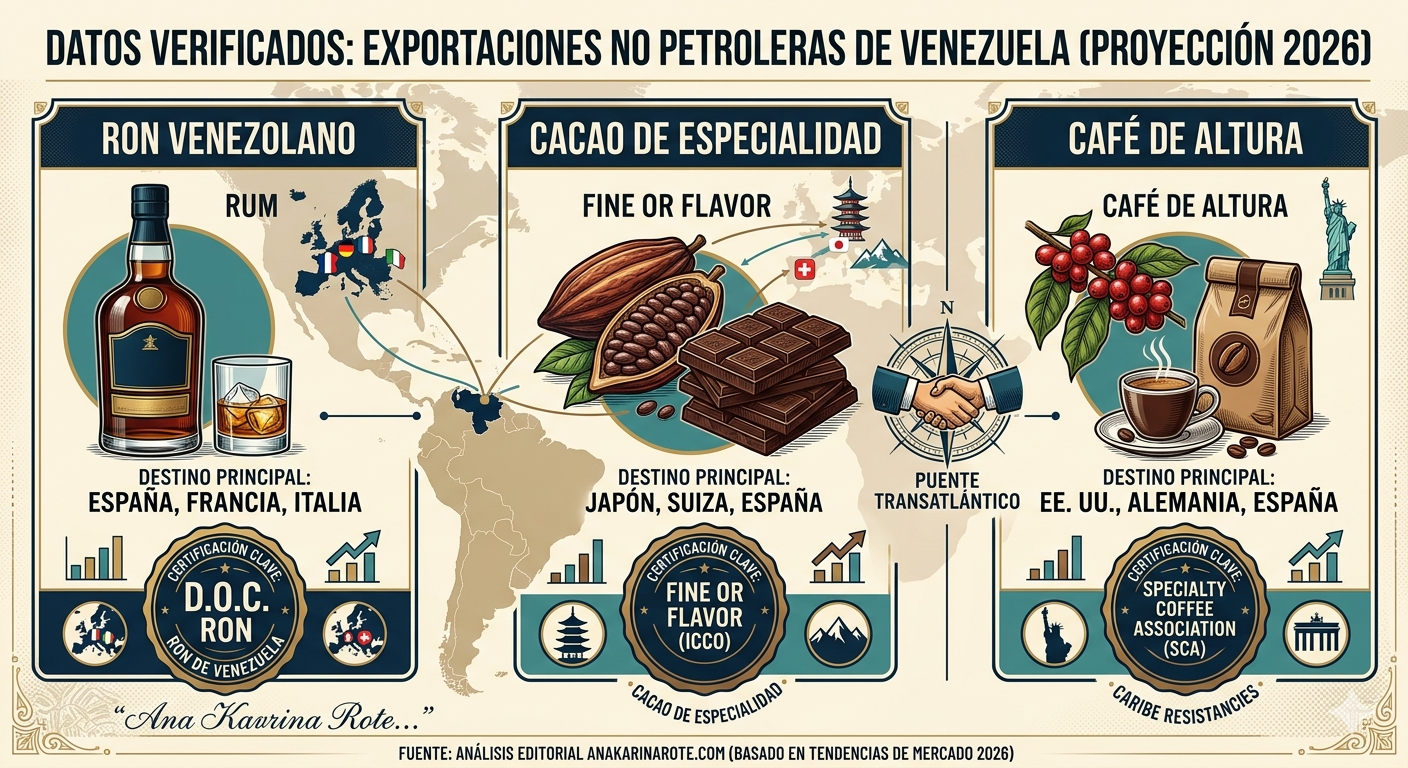 Mientras los puertos venezolanos se acostumbraron durante años a recibir contenedores repletos de productos importados para abastecer la "economía del bodegón", una tendencia silenciosa empieza a invertir la ruta. En este 2026, el ron con Denominación de Origen, el cacao de especialidad y el café de altura venezolano están ganando metros lineales en los supermercados de España y el resto de Europa. Sin embargo, detrás de cada botella de exportación existe una paradoja estructural: un sector privado que florece en nichos de lujo mientras el campo venezolano sigue librando una batalla desigual contra la falta de combustible y el colapso de la vialidad agrícola.