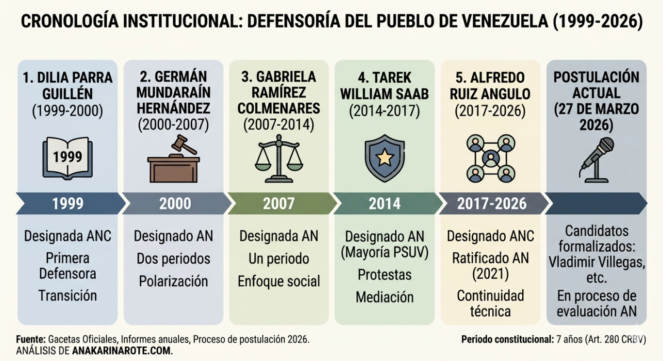 Fecha clave: El proceso de credenciales para Fiscal y Defensor inició el 2 de marzo. La entrada de Villegas en el último minuto del plazo de gracia (48 horas adicionales) indicaría una negociación de última hora.